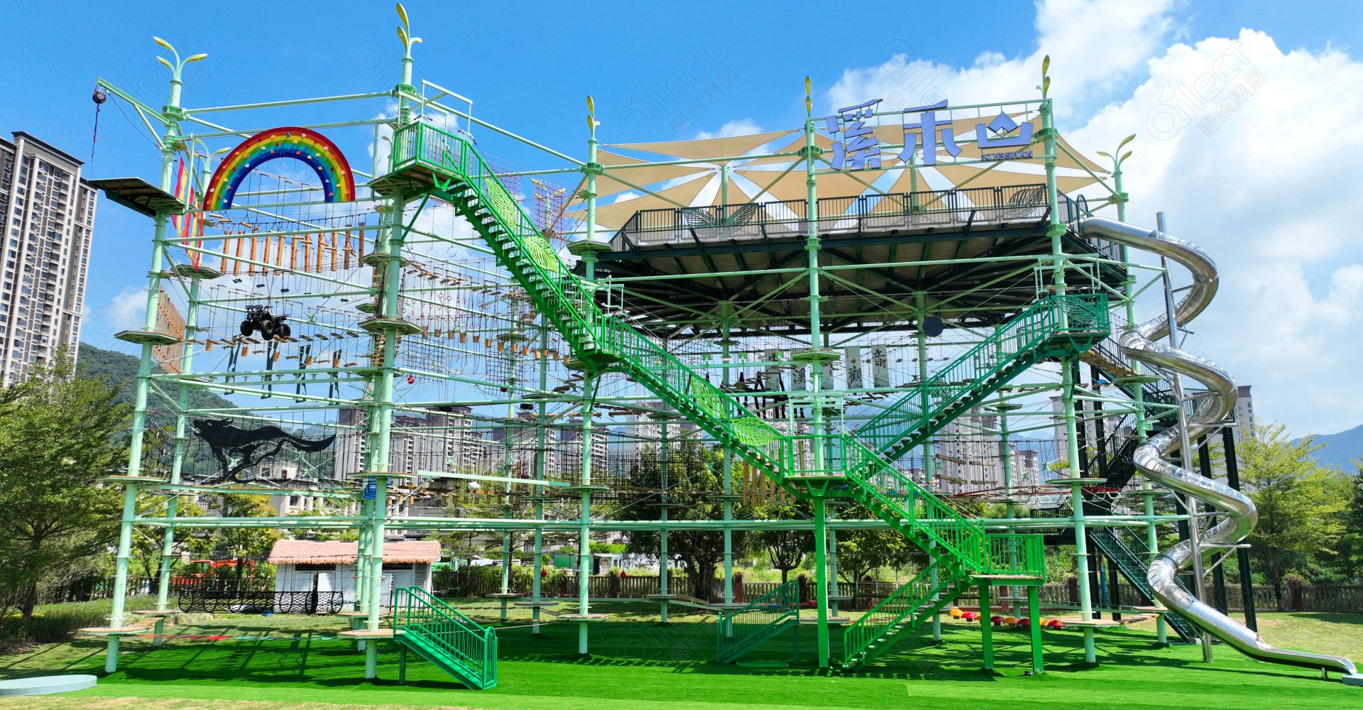 奇樂集團在戶外高空拓展探險設(shè)備領(lǐng)域的專業(yè)實力再獲頂尖企業(yè)認(rèn)可,同時也為溪禾山文化園注入全新的文旅體驗動能,助力其成為福建乃至全國茶文旅融合的標(biāo)桿項目。